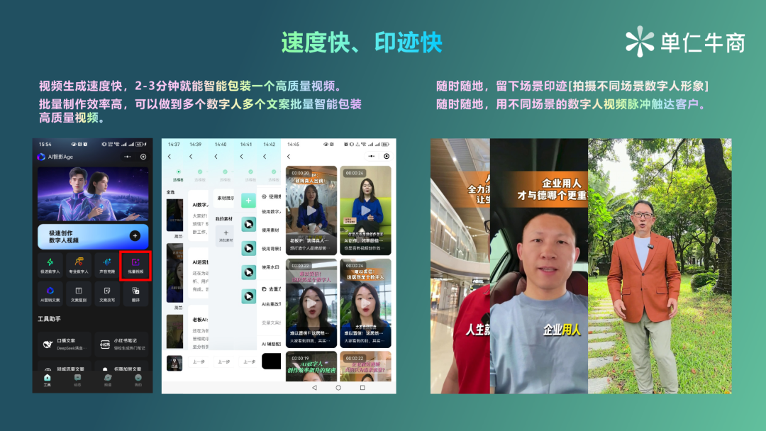 单仁牛商 AI 智影数字人,让“ AI+IP+ 全域营销”从理论变为了可落地执行的生意模型。