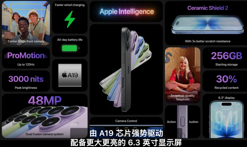 所以,为了消除跟对手在核心体验上的差距,稳固自己在高端市场的基本盘,苹果今年不再对iPhone标准款进行阉割,而是让标准款也成为一个功能和体验完备的旗舰手机。