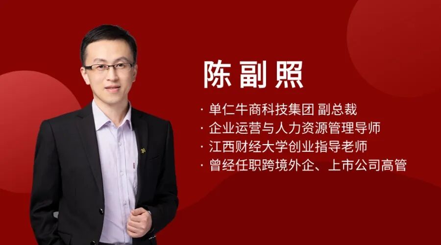 陈副照老师:单仁牛商科技集团副总裁、企业运营与人力资源管理导师、曾任职跨境外企、上市公司高管。他独创的 “七步成诗”年度计划制定法,逻辑严谨,步骤清晰,能将复杂的规划拆解为可执行的步骤,帮助企业“向节奏要业绩”,实现有质量的增长。