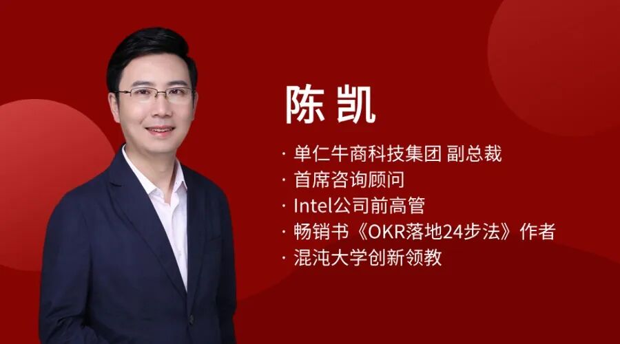 陈凯老师:单仁牛商科技集团副总裁、首席咨询顾问、Intel公司前高管、畅销书《OKR落地24步法》作者。作为