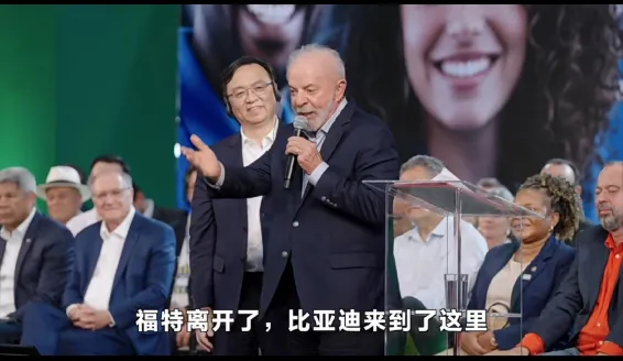 巴西总统卢拉来到现场,拉着王传福的手说:“福特离开了,比亚迪来到了这里,今天是我人生中最难忘的一天”。