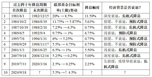还有4次属于"危机式降息",因为经济处于深度衰退或者陷入系统性危机而开启的降息,这导致股市平均18%的跌幅。