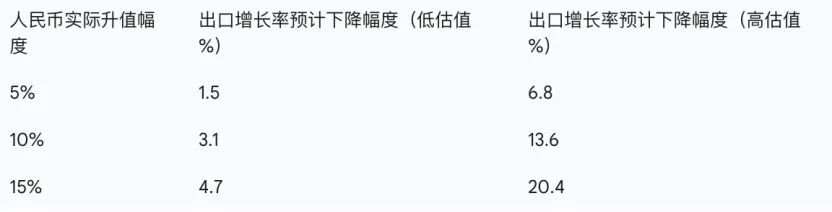 也就是说人民币升值,就意味着出口商品的价格必然上涨,导致竞争力下降。