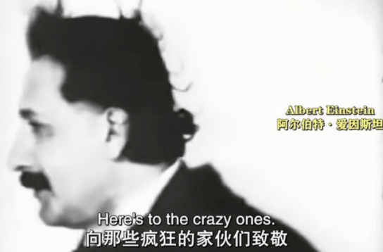 我们存在的目的,不是为了建造让人们工作的机器盒子,虽然我们很擅长,但苹果的核心和深层的价值观,是相信那些充满激情的人能够永远地改变这个世界,我们已经拥有与这种人共同努力的机会,只有那些疯狂到认为自己能改变世界的人,才能最后真正改变世界。”